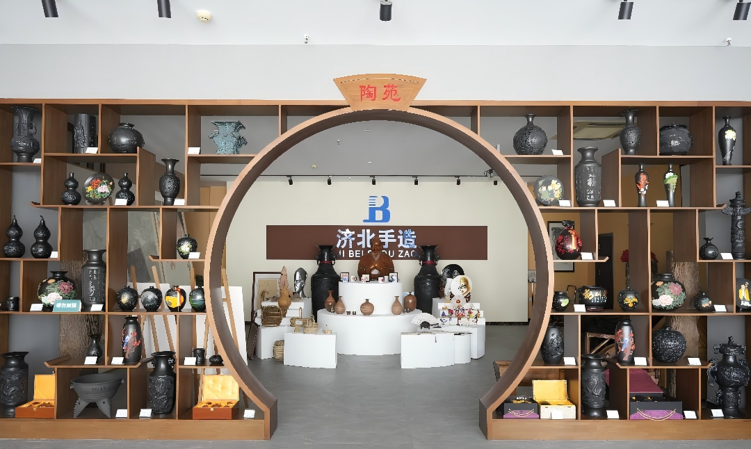 作為濟陽(yáng)區非遺文化的重要展示窗口,展廳始終以傳統技藝類(lèi)產(chǎn)品為核心支柱。升級后,黑陶的古樸厚重、老粗布的經(jīng)緯溫情、木作的匠心巧思、剪紙的靈動(dòng)鮮活、柳編的自然質(zhì)樸,以及黃河五彩陶、刻瓷、烙畫(huà)、彩塑等十余項代表性非遺手造產(chǎn)品依舊悉數亮相,每一件作品都承載著(zhù)當地匠人數十年的技藝沉淀,全方位呈現了非遺文化的深厚底蘊與獨特魅力,讓觀(guān)眾在參觀(guān)中直觀(guān)感受傳統手造的文化溫度。
