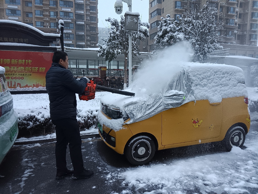 早在12月10日市氣象部門發(fā)布寒潮與降雪預(yù)警時(shí),長(zhǎng)田物業(yè)黨支部便未雨綢繆,第一時(shí)間啟動(dòng)應(yīng)急預(yù)備機(jī)制,明確人員分工,細(xì)化作業(yè)流程;備足融雪劑、鐵鍬、雪鏟、推雪板、鼓風(fēng)機(jī)等清雪物資,確?!氨磩?dòng)、糧先行”。針對(duì)園區(qū)居民數(shù)量多、覆蓋面積廣的特點(diǎn),物業(yè)還提前開展員工專項(xiàng)培訓(xùn)。