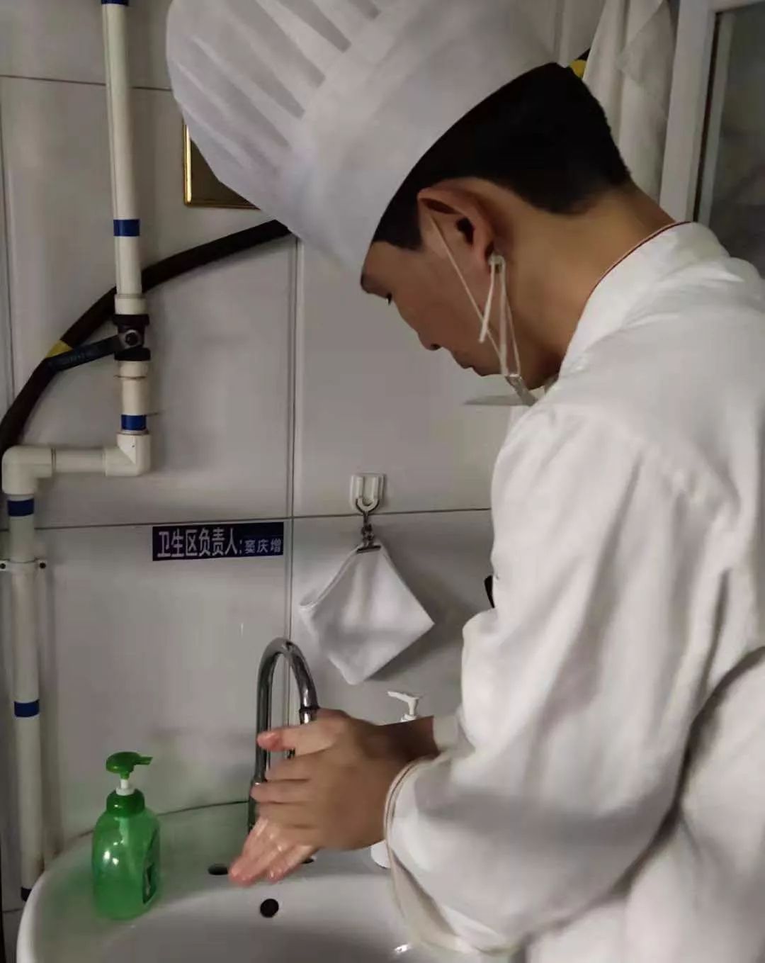 1、廚房備有消毒洗手液,廚師及其他需進入后廚的人員上崗前必須徹底洗手和消毒;