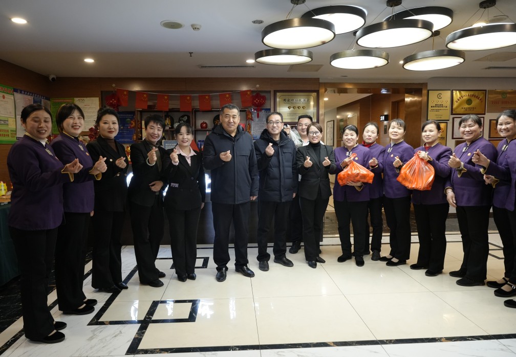 黨支部書(shū)記、董事張勇時(shí)刻掛念著(zhù)一線(xiàn)的員工,今年一如往年,在除夕和大年初一,張總和常務(wù)副總朱寶剛到各業(yè)態(tài)走訪(fǎng)慰問(wèn),與大家溝通交流,感謝他們在萬(wàn)家團圓之際,仍默默付出,為城市的繁榮和市民的幸福生活貢獻力量。這一聲聲問(wèn)候、一句句關(guān)懷,如同冬日暖陽(yáng),溫暖著(zhù)每一位員工的心,也讓大家感受到了企業(yè)的重視與尊重,工作的熱情愈發(fā)高漲。