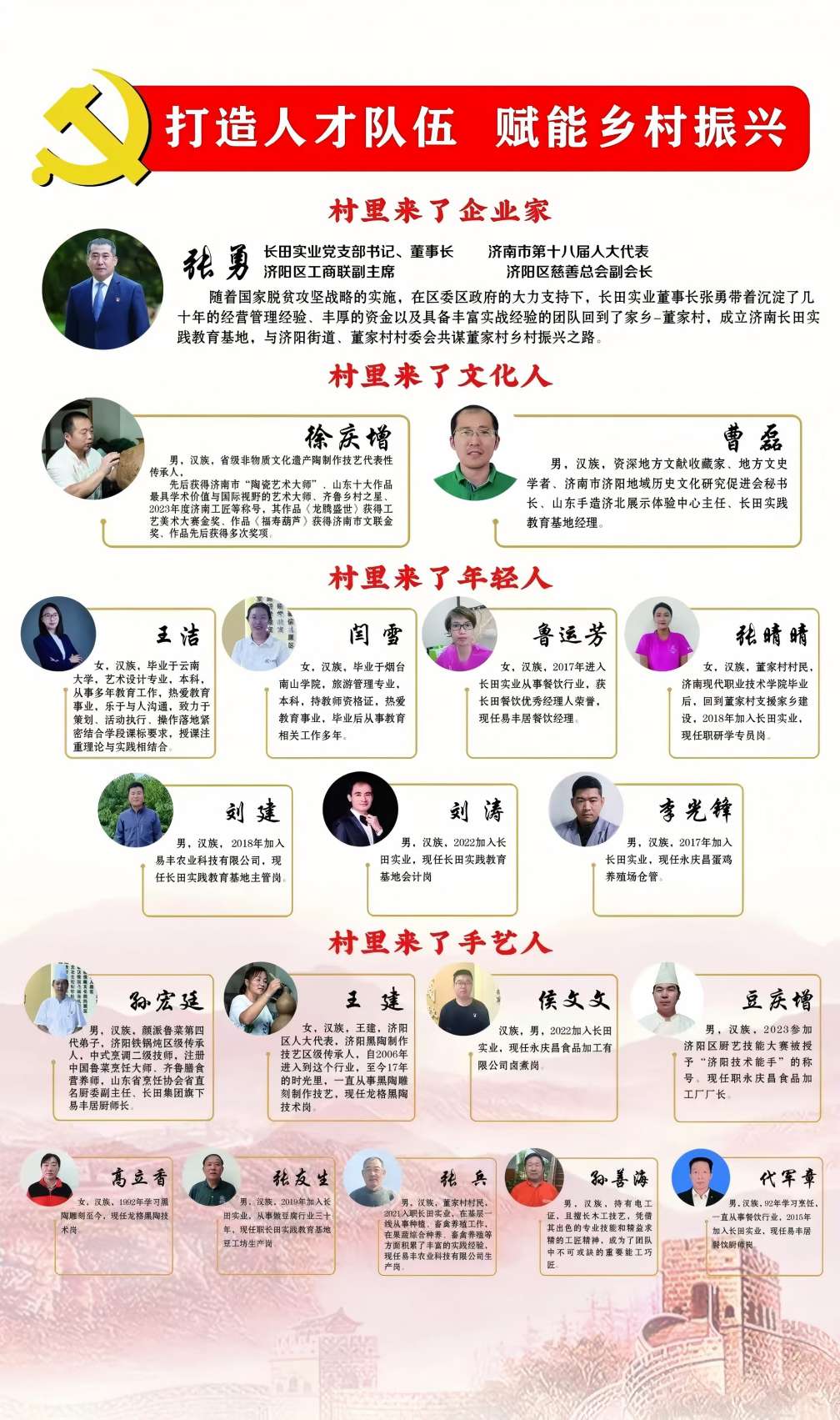 全面建設社會(huì )主義現代化國家,最艱巨最繁重的任務(wù)仍然在農村。2024年12月,中央農村工作會(huì )議在京召開(kāi),強調“健全推進(jìn)鄉村全面振興長(cháng)效機制”。在全面、長(cháng)效推進(jìn)鄉村振興過(guò)程中,人才是關(guān)鍵環(huán)節。以人才振興助推鄉村全面振興,要著(zhù)力打造引才“強磁場(chǎng)”,培厚育才“營(yíng)養土”,奏響用才“交響樂(lè )”,凝聚起全面推進(jìn)鄉村振興的磅礴力量。在人才振興方面,長(cháng)田實(shí)業(yè)通過(guò)實(shí)施“引進(jìn)來(lái)”和“走出去”的策略,成功吸引了大批青年人才來(lái)到鄉村、建設鄉村、振興鄉村。