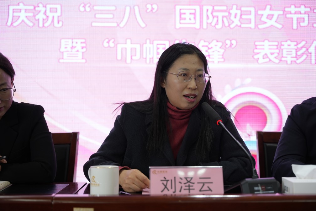 張總首先代表公司向全體女職工致以節日的問(wèn)候!向榮獲“巾幗先鋒”的10位杰出代表表示熱烈的祝賀!對長(cháng)期以來(lái)區婦聯(lián)對長(cháng)田實(shí)業(yè)工作的支持表達誠摯的感謝!他講到,在長(cháng)田實(shí)業(yè)高質(zhì)量發(fā)展的征程中,164名女職工如同164朵鏗鏘玫瑰,在各自崗位上綻放出奪目光彩。她們不僅是“品牌建設戰略”的堅定執行者,更是創(chuàng )新發(fā)展的開(kāi)拓者;不僅是服務(wù)品質(zhì)的守護者,更是城市溫度的傳遞者。她們以智慧為筆、以汗水為墨,展現著(zhù)新時(shí)代女性的擔當和作為。他強調,站在“十四五”收官與“十五五”謀劃的歷史交匯點(diǎn),站在長(cháng)田實(shí)業(yè)高質(zhì)量發(fā)展的征程中,榮譽(yù)于獲獎?wù)叨允恰凹佑驼尽倍恰敖K點(diǎn)站”,在接下來(lái)的工作生活中,要以歸零心態(tài)再出發(fā),用實(shí)干實(shí)績(jì)交出更加美好的答卷。他提出以下四點(diǎn)期望,一是要做政策號召的“踐行者”,以巾幗擔當賦能區域建設新圖景;二是要做家風(fēng)文明的“傳承者”,以幸福小家筑基和諧社會(huì );三是要做奮斗征程的“攀登者”,以實(shí)力贏(yíng)得尊重;四是要做社會(huì )責任的“踐行者”,以溫暖行動(dòng)詮釋大愛(ài)。