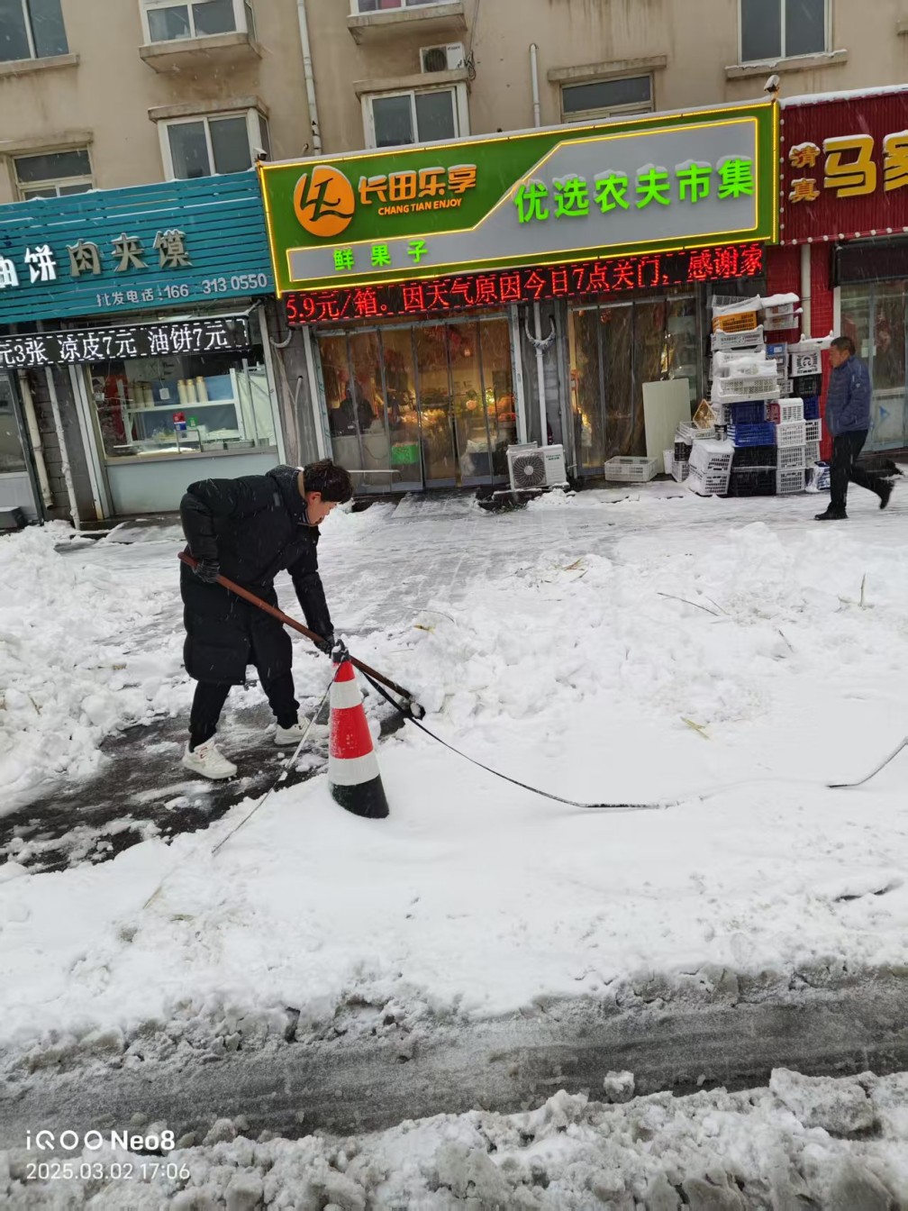 飛雪增寒意,清雪暖人心。3月2日,一場(chǎng)突如其來(lái)的春雪為大地披上了素白銀裝。鵝毛般的雪花紛紛揚揚下了一整天,道路上的積雪深達十余厘米,道路濕滑,臺階結冰,給出行埋下了安全隱患。面對極端天氣考驗,長(cháng)田實(shí)業(yè)各業(yè)態(tài)以“雪”為令,迅速響應,投入到這場(chǎng)與冰雪的“戰斗”中。大家不畏嚴寒,齊心協(xié)力用實(shí)際行動(dòng)展現長(cháng)田人的強大凝聚力和高效行動(dòng)力。