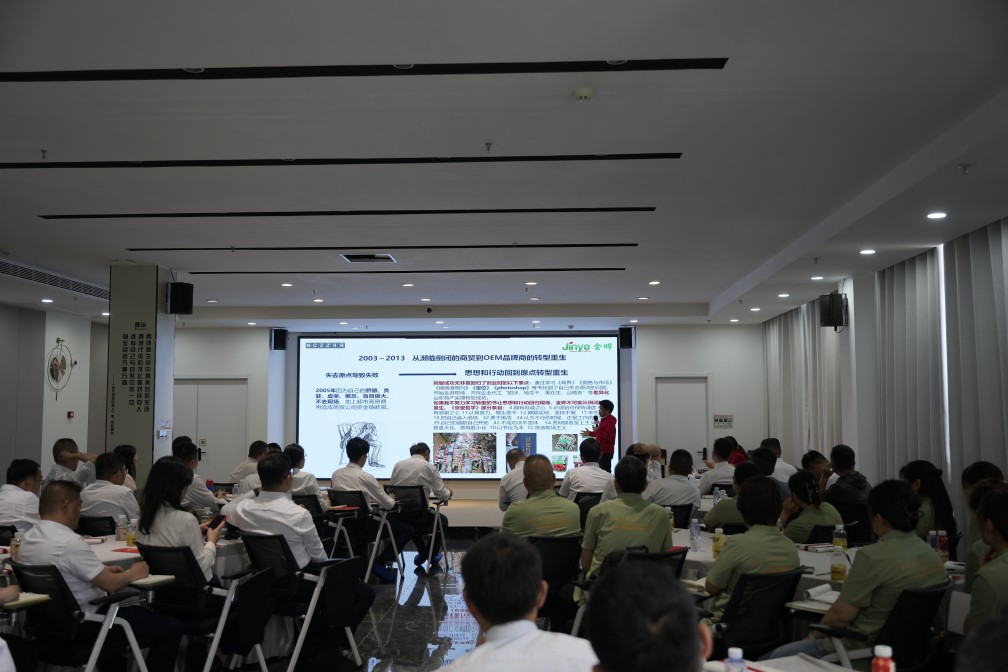 參觀(guān)結束后,眾人齊聚會(huì )議室,參加由金曄食品創(chuàng )始人李金倫主講的學(xué)習交流會(huì )。在分享中,李總以“回歸原點(diǎn)創(chuàng )造美好”為主題,結合金曄的成長(cháng)故事,深入闡釋了企業(yè)如何將稻盛經(jīng)營(yíng)學(xué)融入日常經(jīng)營(yíng),如何把“敬天愛(ài)人”的理念落地生根,深入淺出地分析了當前食品行業(yè)的發(fā)展趨勢和挑戰,并分享了企業(yè)如何在市場(chǎng)競爭中堅守初心、不斷創(chuàng )新的重要性。他講到,回歸原點(diǎn)就是回歸簡(jiǎn)單純粹和真誠善良,人生和經(jīng)營(yíng)的成功無(wú)非是回歸原點(diǎn)的行動(dòng)。他強調,企業(yè)需將哲學(xué)思維(如稻盛和夫理念)與實(shí)戰管理(如華為流程優(yōu)化)融合,形成獨特的經(jīng)營(yíng)體系。他還提出用戶(hù)導向,通過(guò)“空椅子”機制讓用戶(hù)虛擬參與決策,分歧時(shí)優(yōu)先遵循用戶(hù)立場(chǎng);首創(chuàng )無(wú)添加山楂制品,以包裝革新(自立袋、拉鏈設計)提升體驗;拆分職能部門(mén)為“傳統+現場(chǎng)”雙線(xiàn),推行阿米巴模式激發(fā)團隊自主性。李總對企業(yè)使命的解讀、對員工關(guān)懷的重視、對讀書(shū)學(xué)習的熱愛(ài)和感受,以其豐富的經(jīng)驗和獨到的見(jiàn)解,讓與會(huì )者深受啟發(fā),進(jìn)一步認識到企業(yè)文化與價(jià)值觀(guān)在企業(yè)發(fā)展中的核心作用。