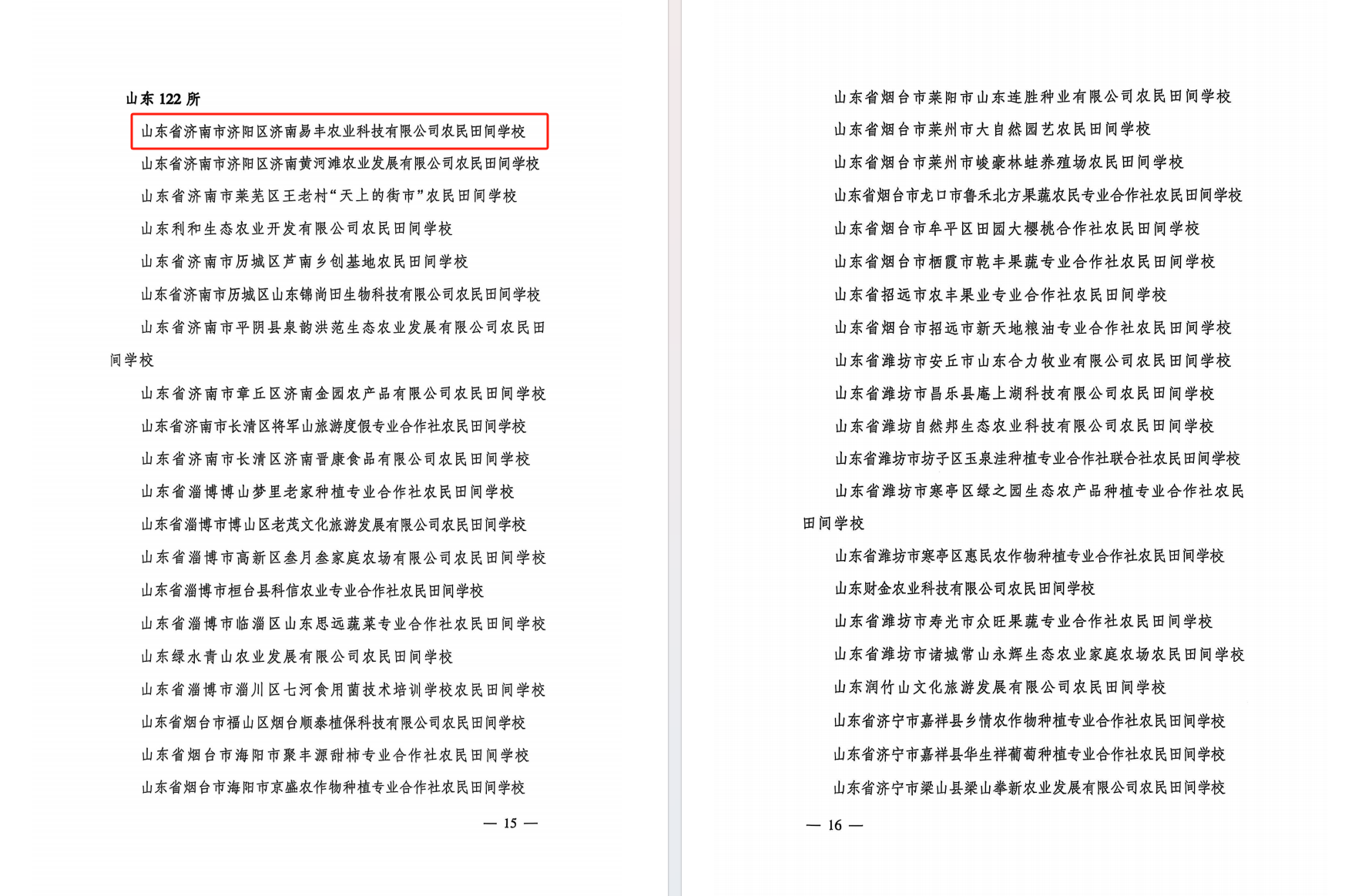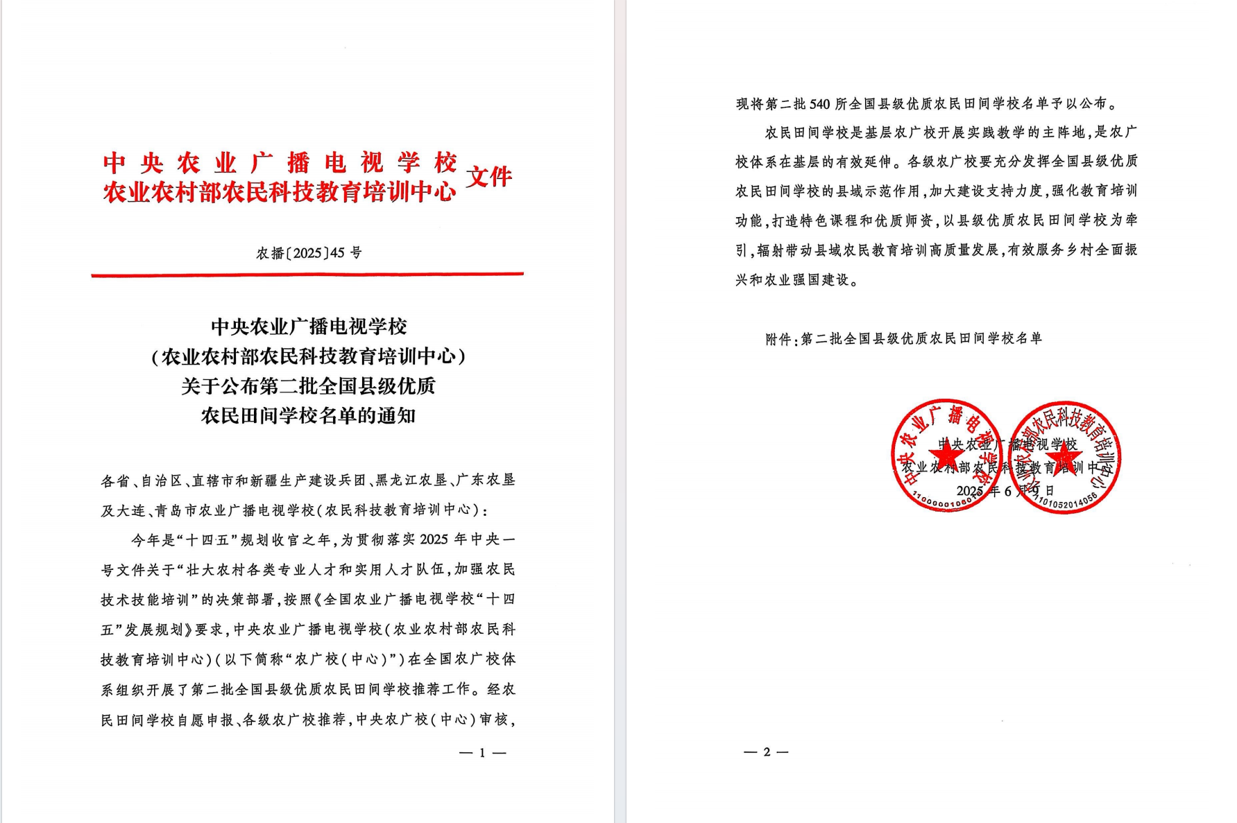 2025年6月9日,中央農業(yè)廣播電視學(xué)校(農業(yè)農村部農民科技教育培訓中心)公布了“第二批全國縣級優(yōu)質(zhì)農民田間學(xué)校名單”。濟南易豐農業(yè)科技有限公司農民田間學(xué)校,榮耀上榜,榮獲國家級殊榮!