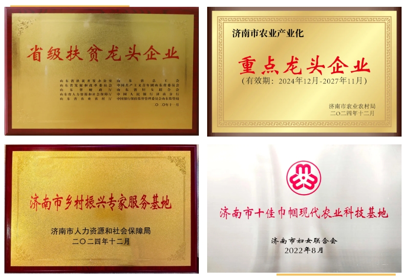 公司自身也憑借卓越的表現,被評為“省級扶貧龍頭企業(yè)”“濟南市農業(yè)產(chǎn)業(yè)化重點(diǎn)龍頭企業(yè)”“濟南市巾幗現代農業(yè)科技基地”等多項榮譽(yù)。這些榮譽(yù)不僅是對易豐農業(yè)過(guò)往工作的充分肯定,更是對未來(lái)發(fā)展的有力激勵與鞭策。